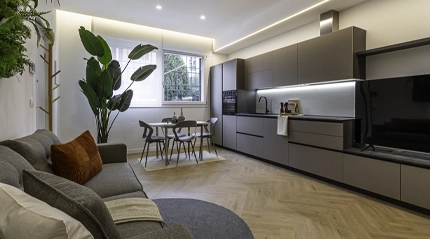 Fino a poco tempo fa questi ambienti ospitavano scrivanie, stampanti e lampade al neon. Oggi raccontano storie di calore famigliare. Il motivo? Il recupero integrale di un ex ufficio che, grazie a un progetto di ristrutturazione finemente progettato, si è sdoppiato in due appartamenti residenziali dalle identità cromatiche diverse ma legate da un risultato tecnico di punta: massimizzazione degli spazi e la classe energetica A1.